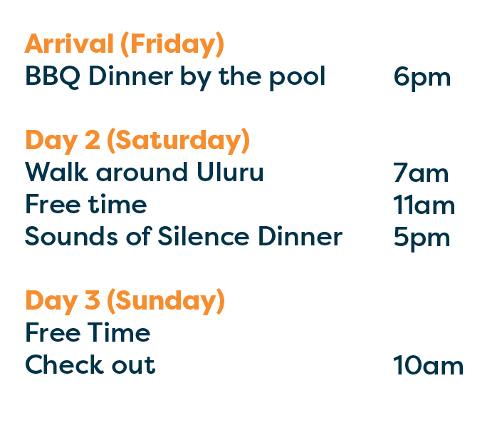 You'll get the chance to feel the magic of Uluru over 3 days, surrounded by passionate changemakers like yourself.